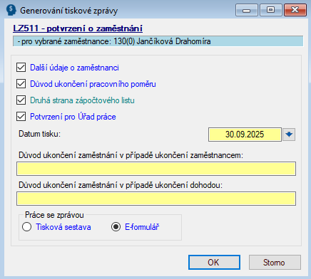 - LZ511UP – Potvrzení o zaměstnání (záp. list II.)