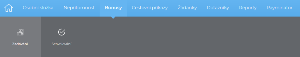 Modul „Bonusy“ slouží k zadávání a schvalování bonusů a odměn podle nastaveného workflow. Po přihlášení do HR Portálu jej vidí pouze nadřízené osoby, které mohou bonusy zadávat i schvalovat. Nadřízenost a podřízenost se určuje buď podle nastavení na kartě zaměstnance, nebo podle systemizace.