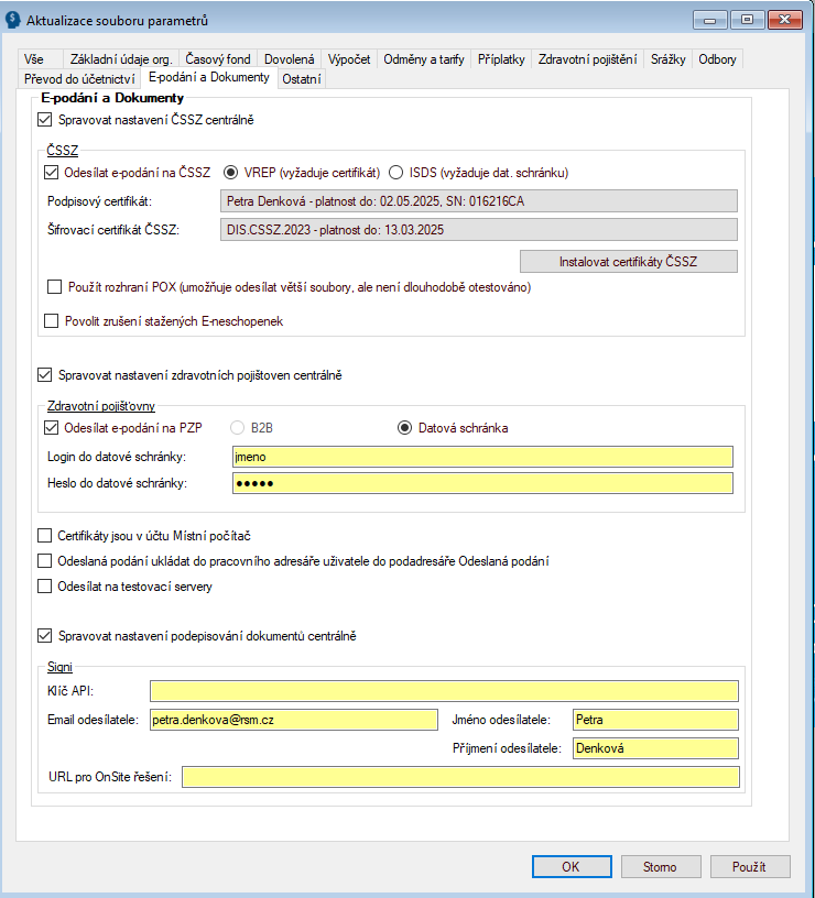 Spravovat nastavení ČSSZ centrálně