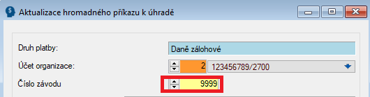Každý závod musí mít vlastní hodnotu údaje L4614 a odpovídající nastavení v hromadných platbách.